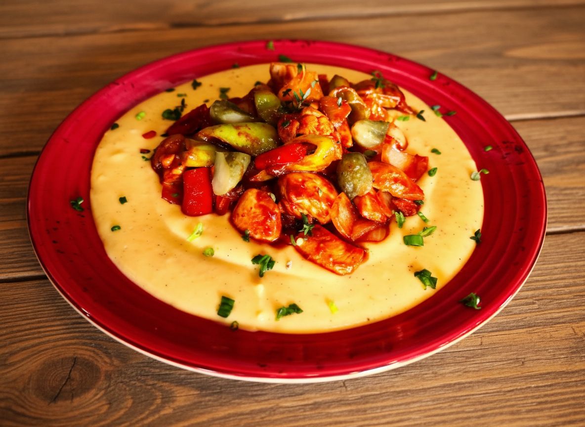 200gr tavuk, yeşil biber, kırmızı biber, özel tatlı acı sos, patates püresi ile