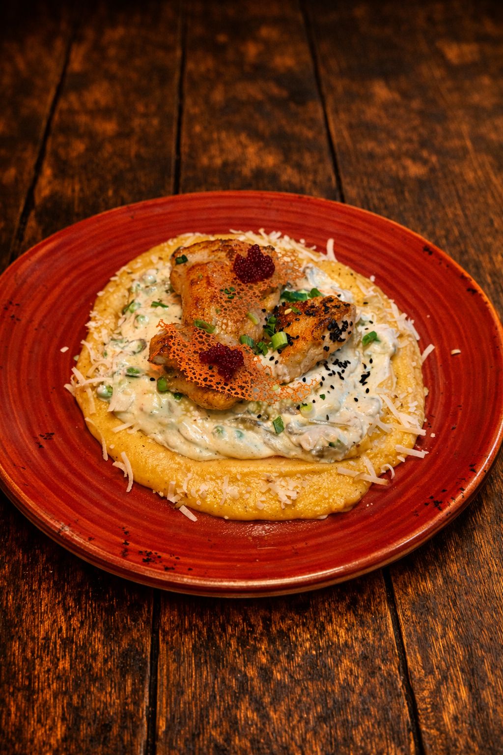200gr tavuk but, istridye ve kültür mantarı, türüf, özel sos, patates, akdeniz yeşillikleri ile